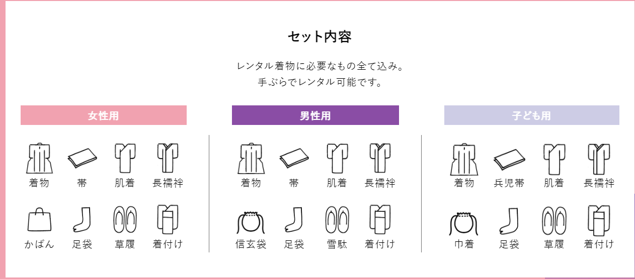 これらの小物レンタルも全てプランに含まれます。(オプション小物も豊富です♪)